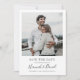 Este simples casamento de fotos quentes, salve o cartão de data, tem um design quente e minimalista. Os recursos frontais SAVE O texto DATA acima dos seus nomes e data e local do casamento. A cor padrão do texto em ambos os lados é uma cinza muito escura que é na sua maioria negra. Seus nomes na frente são destacados com uma fonte viva e caprichosa de escrita manual que dá um senso de calor e familiaridade a este olhar moderno minimalista. Escolhemos os cantos nítidos como a forma padrão, mas os cantos arredondados também funcionam maravilhosamente com este design, então tente ambos os modos de edição e veja quais são os seus! Em ambos os lados, definimos o plano de fundo como transparente para permitir que a cor do papel sirva simplesmente como a cor base. Você pode escolher uma cor para o plano de fundo em um ou em ambos os lados se preferir outro aspecto. Você também pode editar o texto de acordo com as suas necessidades. Talvez você queira excluir um campo de texto que não precisa ou alterar a cor ou a fonte de algum texto. Quando você edita a parte frontal do cartão para mostrar seus próprios nomes, por exemplo, você também pode optar por alterar a cor desse script de escrita manual, ou mesmo substituir o script que escolhemos para uma fonte diferente, etc. Ou você pode mudar 'SALVAR A DATA' para 'SALVAR NOSSA DATA', ou mudar 'vão se casar' na parte de trás para 'são casandos', etc. Use as ferramentas intuitivas de design, sua foto favorita e sua inspiração para fazer com que este casamento de na moda salve a carta de data chata exclusivamente sua!
