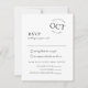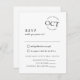 Este cartão de resposta de convite de casamento preto e branco moderno coloca as informações de resposta dos convidados e a escolha da refeição de recepção em uma tipografia de linha limpa e grande e um detalhe único com o R.S.V.P. antes da data em um layout de estilo de selo chique. Parte do conjunto de convites Modern Date Seal.