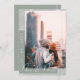 Sr. e Sra. Sage Green e cartão de data de casamento com foto e escrita branca. Impressione seus convidados com este cartão de data de casamento estiloso e simples, em verde musgo, com uma foto, e com uma escrita moderna em branco sobre um fundo verde sage bokhe, mostrando elegantemente a data do casamento na horizontal ao longo da esquerda, ao lado de uma foto personalizada do casal a se casar, com um elemento de linha prateada simples na lateral direita. E um verso simples e minimalista em verde musgo, com apenas os nomes e o local do casal a se casar em uma fonte branca elegante. Este cartão de data de casamento minimalista dá um toque elegante e moderno ao seu casamento verde sage.