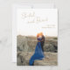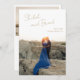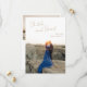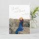 Casamento moderno salve o cartão de data com um simples design com seus nomes em um roteiro elegante no canto superior esquerdo e seu encontro, cidade e estado abaixo à direita, sobre sua foto vertical favorita. O modelo inclui uma camada superior ao longo da parte superior para ajudar o texto a se destacar contra sua foto e pode ser removido na ferramenta de edição de design. O verso tem uma segunda imagem horizontal, juntamente com detalhes adicionais em ouro antigo. Esse design monocromático mínimo funciona bem para uma variedade de estilos e temas de casamento. Se preferir, você pode alterar as cores na ferramenta de edição de design.