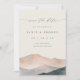 Defina o tom para o seu dia de casamento com este elegante rústico salve a data da coleção Sierra Dusk por Redwood & Vine Design Co. Uma paisagem aquosa em blush, pêssego e ardósia captura a beleza de um pôr do sol da montanha, perfeita para casamentos do sudoeste ou inspirados no deserto. A tipografia moderna acrescenta um toque refinado, enquanto o verso apresenta espaço para três fotos e detalhes personalizados. Ideal para casais planejando uma celebração quente e neutra com beleza natural no centro.
