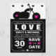 Convite de casamento com silhueta de motociclista preto e branco e rosa. Um convite de casamento realmente ótimo, sofisticado e contemporâneo. Um ótimo convite para qualquer casamento de motoqueiro, rock n roll ou fora do comum! Destaque-se da multidão com esses ótimos convites pretos, rosa e branco! Criado e protegido por direitos autorais em 2011 por Julie A Farrell OddLotPaperie Designs. Se precisar de ajuda para personalizar este convite, por favor entre em contato comigo através do link na minha loja e ficarei mais do que feliz em ajudar! Um incrível convite de casamento de motoqueiro com motocicletas e corações rosa e uma tipografia INCRÍVEL!