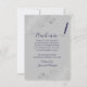 Estas belas cartas são uma forma excelente de deixar seus amigos e família saberem salvar a data do seu próximo casamento. Eles apresentam um elegante design azul e cinza marinho com sua foto em forma oval cercado por ornamentados de cinza prata e espirais, com a inscrição no roteiro do rico e espaço para seus nomes, data do casamento e local. O verso tem um gráfico bonito de "lápis nós in" com espaço para uma nota que pode incluir um site onde seus convidados podem obter mais informações.