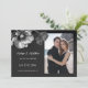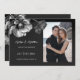 This Save the date card features silver gray flowers on a black background.