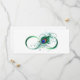 O símbolo do infinito com uma pena brilhante, verde, de pavão artístico sobre um fundo branco. Tatuagem.