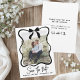 The background is white on both sides, and all artwork and fonts are black for a clean, minimal look. The back includes a short request to save the date, the location, and “formal invitation to follow,” written in a mix of handwritten and script fonts. Available as a printed card or a digital file you can send or print anywhere.