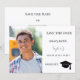 On front: Add your own vertical size photo of the graduate. A chic white background, black text. Templates for a name and date. The name is written with a modern hand lettered style script. With a cap, tassel topper.