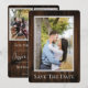 Anuncie a data do seu casamento para amigos e familiares com este simples e elegante Save the Date de foto rústica. O design do anúncio apresenta um rico fundo de madeira e espaços para três fotos do casal feliz, completo com um design de texto moderno.