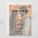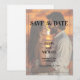 A simple Save the Date Card with elegant calligraphy and a special photo overlay.