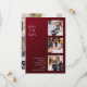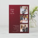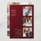 Simples Casamento Salve a data Fotografia Convites apresenta quatro de suas fotos favoritas, três na frente e uma no verso com o texto "Salve a data" em uma elegante tipografia moderna de escrita em um fundo de cinzeiro burguês. Simples, moderno e elegante para a sua celebração do dia do casamento. Elaborado por ©Evco Studio www.zazzle.com/store/evcostudio