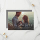 Salve a data! Este simples e elegante casamento de uma foto, salvar a data, a design é perfeita para anunciar seu noivado e o próximo casamento. Apresentando o tipo clássico e a sala do seu texto personalizado que pode incluir nomes de cheio, data de casamento, local, site e muito mais, este cartão pode funcionar com uma variedade de fotos. A parte traseira da placa é uma cinza leve com um padrão traço sutil e tem espaço para uma segunda foto e mais texto, mas também pode ser deixada vazio. Outras cores e estilos estão disponíveis nesta coleção por Lea Delaveris design. Também disponível como uma gravação digital do arquivo de data download.