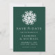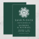 Anuncie seu casamento no inverno com estilo com nosso Simples Floco de Neve Verde Salve a Data. Apresentando um floco de neve branco e ousado e "Salve a Data" em uma elegante serifa e letras caligráficas em um fundo verde escuro, esta design captura a beleza do inverno. Personalize com seus nomes, data do casamento e local abaixo. Perfeito para o inverno, feriado e casamentos de Natal, esta salva a data dá o tom para uma celebração mágica.