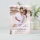 Foto personalizada e personalizada na frente e atrás de convites elegantes e modernos para o casamento de data - inclui uma bela e elegante tipografia para a celebração especial do dia do casamento.