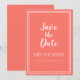 Anuncie seu próximo evento com nosso moderno cartão de anúncio de casamento Save The Date nas cores LIVING CORAL e branco! O conjunto de convites apresenta um design minimalista com uma moldura dupla em branco crocante sobre um fundo na tendência LIVING CORAL. A redação tradicional fornece sofisticação atemporal e moderna. Personalize o design do casamento com seus nomes e data em letras brancas crocantes e script. O verso do cartão é na cor coral sólida.