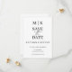 Esses elegantes save the date de casamento ou chá de noiva modernos apresentam um design de texto simples em preto e branco que exala estilo minimalista. Adicione suas iniciais ou monograma para torná-los completamente seus.