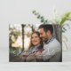 Compartilhe as notícias de seu noivado e casamento com esta horizontal de uma foto, salve a placa de data com um elegante tratamento de tipo em branco que se senta na parte inferior de uma foto horizontal. O tipo tem espaço para nomes longos, além de data de localização e outras informações para amigos e familiares, como um site. A parte de trás é uma sombra neutra com um padrão sutil de textura com espaço para uma segunda foto. A cor pode ser ajustada clicando em "Personalizar".