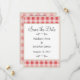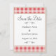 Simples xadrez vermelha/doce gingham, salve a data para um casamento de fazenda.