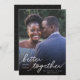 Esta foto de na moda Salve a data da placa sem formatação apresenta tipografia manuscrita, leitura, "melhor juntos" sobre um modelo de foto sangrada de cheio. Uma cobertura escura na parte inferior da placa permite que o texto se destaque sobre quase qualquer foto! A parte traseira da placa contém um padrão simples de pontos pequenos em branco sobre um fundo de cor personalizado. Para obter informações sobre a design, entre em contato comigo (Tracey) em orabellaprints@outlook.com.