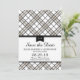 DA COLEÇÃO DE NOIVADOS SIMPLY PLAID: Salvar a data com padrão xadrez preto e marrom moderno. Se o esquema de cores não é o que você queria, por favor me avise e eu vou recriar isso para você, mas por favor entre em contato comigo antes de fazer um pedido. Email paula@labellarue.com Feliz Planejamento de Noivado! Certifique-se de escolher seu papel cartão favorito para imprimi-lo.