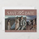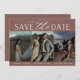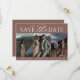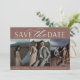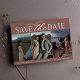 A modern save the date card designed to accommodate three vertical engagement photos aligned in a side by side layout. "Save the date" appears beneath in chic block and script lettering, along with your names, wedding date and wedding location. Cards reverse to reveal additional save the date details.