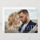 Esta foto de sobreposição de caligrafia moderna e elegante salva a data com uma combinação de tipografia moderna de caligrafia e uma serifa única. Sua foto de noivado ocupa o centro das atenções nesta linda salva-data.
