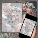 Anuncie as boas novas da celebração do seu aniversário com convites "Nós Ainda Fazemos" de data de reserva com sobreposição de fotos personalizadas exclusivas. As duas fotos e todo o texto são fáceis de personalizar para qualquer aniversário de casamento. É perfeito também para um segundo casamento, cerimônia de renovação de votos ou recepção de primeiro aniversário. Pode incluir todos os detalhes importantes, como data do casamento, local e site. (DICA DE COLOCAÇÃO DE IMAGEM: Uma maneira fácil de centralizar uma foto exatamente como você quer é cortá-la antes de fazer o upload para o site da Zazzle.) O design moderno em preto e branco apresenta 2 fotos de sua escolha, caligrafia de roteiro manuscrita moderna e tipografia elegante no estilo de máquina de escrever. Parabéns ao casal pela celebração deste marco!