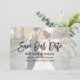 Script de Pincel Moderno Salve nossa Placa de Anúncio de Noivado de Data com Sobreposição de Fotografias - Frente de Fotografia e Volta de Fotografias