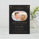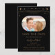 O Sol Lua Estrela Espaço Preto Místico Dourado Salve As Datas apresenta uma moldura de sol, lua e estrelas douradas em um fundo preto. Dentro está sua foto favorita e suas informações personalizadas de salve a data. Personalize editando o texto nas caixas de texto. Criado para você por ©2022 Evco Studio www.zazzle.com/store/evcostudio