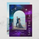 Espaço em Estrela da Lua Solar Roxo Cósmica Solo Solo Solar As Datas apresentam um sol prateado, lua e estrelas em um fundo celeste. Dentro é a sua foto favorita e o seu personalizado salva as informações de data. Adicione uma foto adicional no verso. Personalize editando o texto nas caixas de texto. Projetado para você por © Evco Studio www.zazzle.com/store/evcostudio