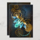 Barbeiro véu com asas transparentes azuis e lâmpada verde sobre fundo vestido, marrom, texturizado. Estilo Steampunk.