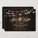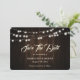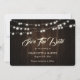 Casamento russo salve o cartão de data com luzes de cordas e corações de burlap com iniciais em um fundo de madeira rústica. Personalizar facilmente este romântico casamento rústico salve a data online. Itens correspondentes disponíveis para complementar esta madeira rústica salvam a data.