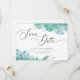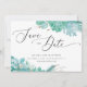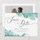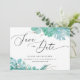 Suculentas florais de hortelã em aquarela Save the Date com letra elegante para casamento de inverno.