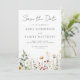 Este design apresenta uma borda de aquarelas de flores silvestres em tons de ouro, vermelho, azul e verde. Perfeito para primavera e casamentos de verão.
