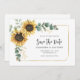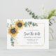 Crie um moderno Floral de Girassol salve o anúncio da data com este lindo modelo com um belo buquê floral rústico, quadro geométrico com a moderna tipografia simples sobre fundo branco. DICA: Cartões de suíte de casamento iguais, como RSVP, programas de casamento, banners, tapeçarias, etiquetas de presentes, placas e outras pegadas de casamento e guloseimas estão disponíveis na coleção abaixo com esta design.