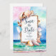 Bask no calor do amor com nosso casamento Sun Beach Sunset Salve o Encontro. Esta design captura a beleza serena de um pôr do sol da praia com suas matizes suaves e atmosfera romântica. Totalmente personalizável e disponível para download instantâneo, personalize-o on-line para refletir perfeitamente o seu casamento temático. Crie um elogio digital que convida os convidados a compartilhar no tranquilo e inspirador ambiente do seu casamento na praia ao pôr do sol, estabelecendo um tom memorável para o seu dia especial.