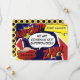 Se você e seu companheiro compartilharem uma paixão por quadrinhos e super heróis... então este é o anúncio perfeito do casamento "Salve a Data" para você! Cores vivas e brilhantes e a mensagem "Estamos Combinando Nossas Superpotências" Adicione nomes e data. Parabéns!