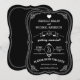 Um lindo anúncio de "Salve a Data" com tema vintage em estilo de quadro-negro, projetado para o formato de convites, inclui uma mistura eclética de tipografia, uma faixa caprichosa e molduras com rolagem para destacar sua próxima celebração de casamento. Perfeito para qualquer tema de quadro-negro, casamento rústico, de celeiro ou estilo country, o texto branco sobre o fundo preto faz uma declaração moderna e, ao mesmo tempo, vintage. O texto curvo encantador adiciona interesse e destaca seus detalhes. Procure todos os nossos produtos "Fancy Chalkboard" coordenados, como cartões de recepção e resposta, cartões de mesa, programas, adesivos, caixas de presente, guardanapos, etiquetas de endereço e postagem - tudo o que você precisa para criar um belo conjunto para todo o seu casamento.