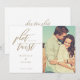 Às vezes as coisas mudam. Atualize seus convidados de casamento com a nova data do casamento com nosso cartão moderno de 'salve a data'. O design apresenta um layout simples e moderno com um espaço reservado para a foto do casal. "Surpreendente" exibido em caligrafia moderna. Personalize com o nome do casal, data e local do casamento. O verso apresenta sua própria mensagem pessoal e "Ok, Novo Plano" em caligrafia moderna.