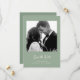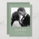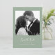 Este simples e na moda, sábio casamento verde salve o cartão de data com tipografia de script de vintagem de marfim com sua foto e um código de QR digitalizável para seu site de casamento ou detalhes.