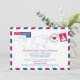 Um divertido e criativo convite de Recepção Pós-Casamento para enviar a todos os seus convidados anunciando seu casamento no destino. Design de correio aéreo com mapa do mundo e coração sobre a localização da Tailândia. Para consultas sobre alterações de design personalizadas pelo designer independente, por favor, envie um e-mail para paula@labellarue.com ANTES de personalizar ou fazer um pedido.