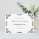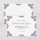 Este design de Save the Date de casamento minimalista floral roxo Talavera mexicano apresenta uma abordagem minimalista com delicados motivos florais roxos simétricos colocados em cada canto e ao longo das bordas. As pequenas formas semelhantes a folhas criam uma sensação de movimento, mantendo um espaço arejado e aberto no centro, permitindo uma ampla colocação de texto. A simplicidade e a elegância do padrão evocam os tradicionais azulejos Talavera, dando ao design um sentimento clássico de artesanato mexicano.