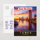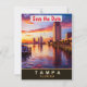 Convite de casamento de salva data de Tampa, cartão-postal de viagem. Pôr do sol lindo sobre a orla da cidade em cores vibrantes.