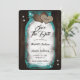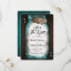 Casamento de teal russo salve o cartão de data apresentando um jarro de pedras com luzes de cordas e corações de burlap contra um fundo de madeira de celeiro enfeitado com luzes de brilho. Personalize facilmente este belo casamento rústico, salve a data online. Itens correspondentes disponíveis para complementar este casamento local salvem a data.