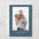 Moderno e mínimo, salve o cartão de data com um roteiro elegante que diz "salve a data" no fundo da rua no meio com as breves informações do casamento. Você pode adicionar uma foto atrás.