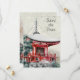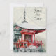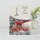 Este casamento Salvar o convite da Data captura a beleza oriental do Japão. Tem um belo fundo natural com um templo budista japonês pintado e verde.