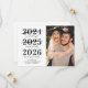Cartão engraçado de salvar a data com uma foto sua e do seu parceiro, o ditado '2020 primeira tentativa, 2021 segunda tentativa, 2022 terceira tentativa é a vencedora', seus nomes, data e local do seu casamento futuro.