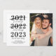 Cartão engraçado de salvar a data com uma foto sua e do seu parceiro, o ditado '2020 primeira tentativa, 2021 segunda tentativa, 2022 terceira vez é a venceda', seus nomes, data e o local do seu casamento futuro.