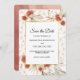 Anuncie o seu casamento com elegância terrosa com este cartão de Tropical Terracotta Dried Floral Save the Date. Com ramos de palmeira em aquarela, rosas terracota, elementos botânicos cor-de-rosa e um toque de detalhes em dourado, este design combina charme boho com calor tropical. Ideal para casamentos de destino, celebrações de outono ou temas rústicos modernos. Personalize-o com seus nomes, data e local do casamento para criar uma primeira impressão estilosa e inesquecível.