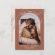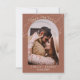 Terracotta Salve o cartão de data. Casamento Laranja queimado, salve a data. Este modelo de cartão contemporâneo para você personalizar para o evento perfeito. Moderno com arco personalizado de fotos. Boho convida a mostrar flores tropicais, folha de monstera, arco fotográfico. Convite moderno e simples desenhado digitalmente.