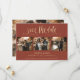 Elegante terracotta e cartões salve a data de 4 fotos do casamento dourado com um moderno título de roteiro de folha de ouro falso. Personalize facilmente este casamento de terracota e salve a data com suas imagens e detalhes de casamento, incluindo um site de casamento.